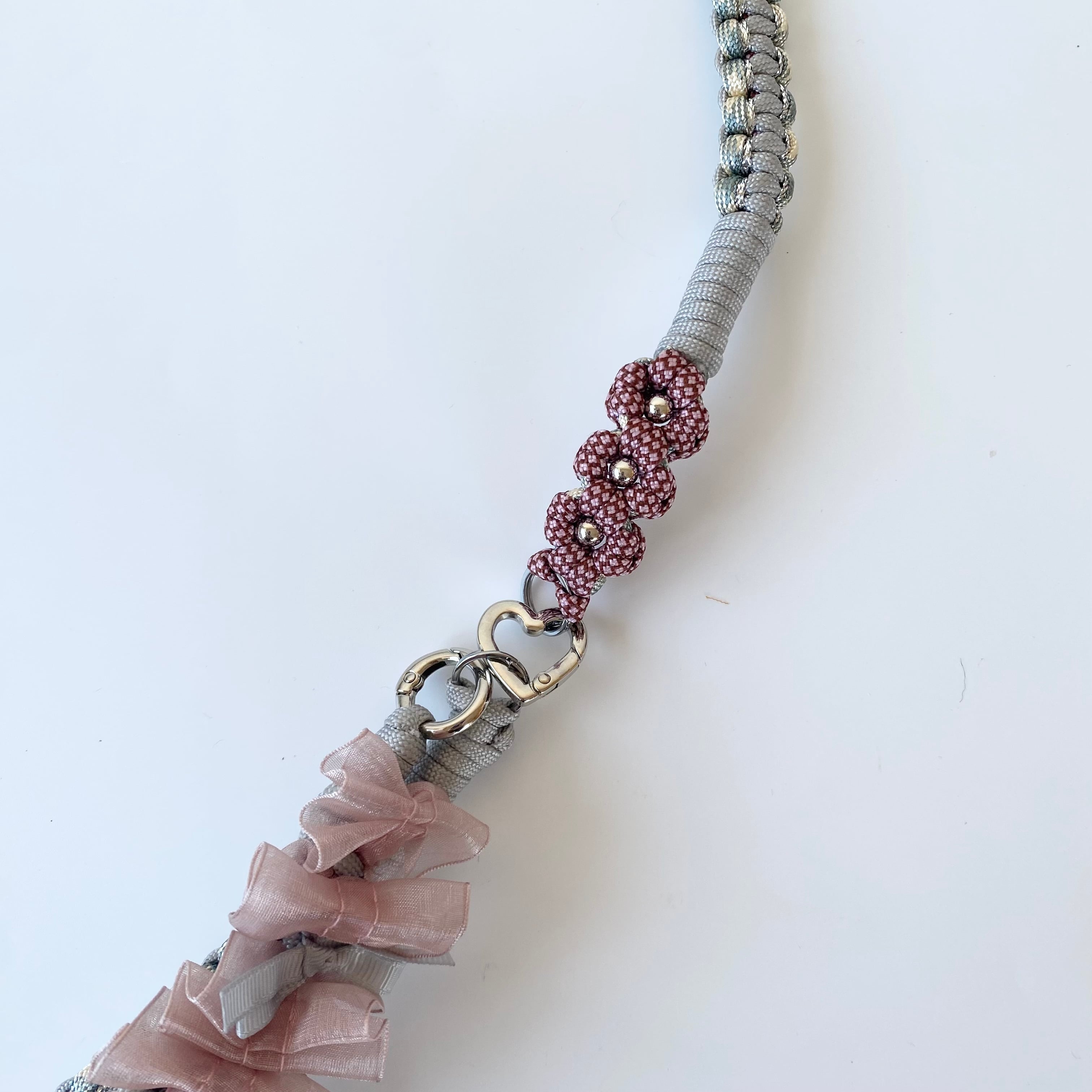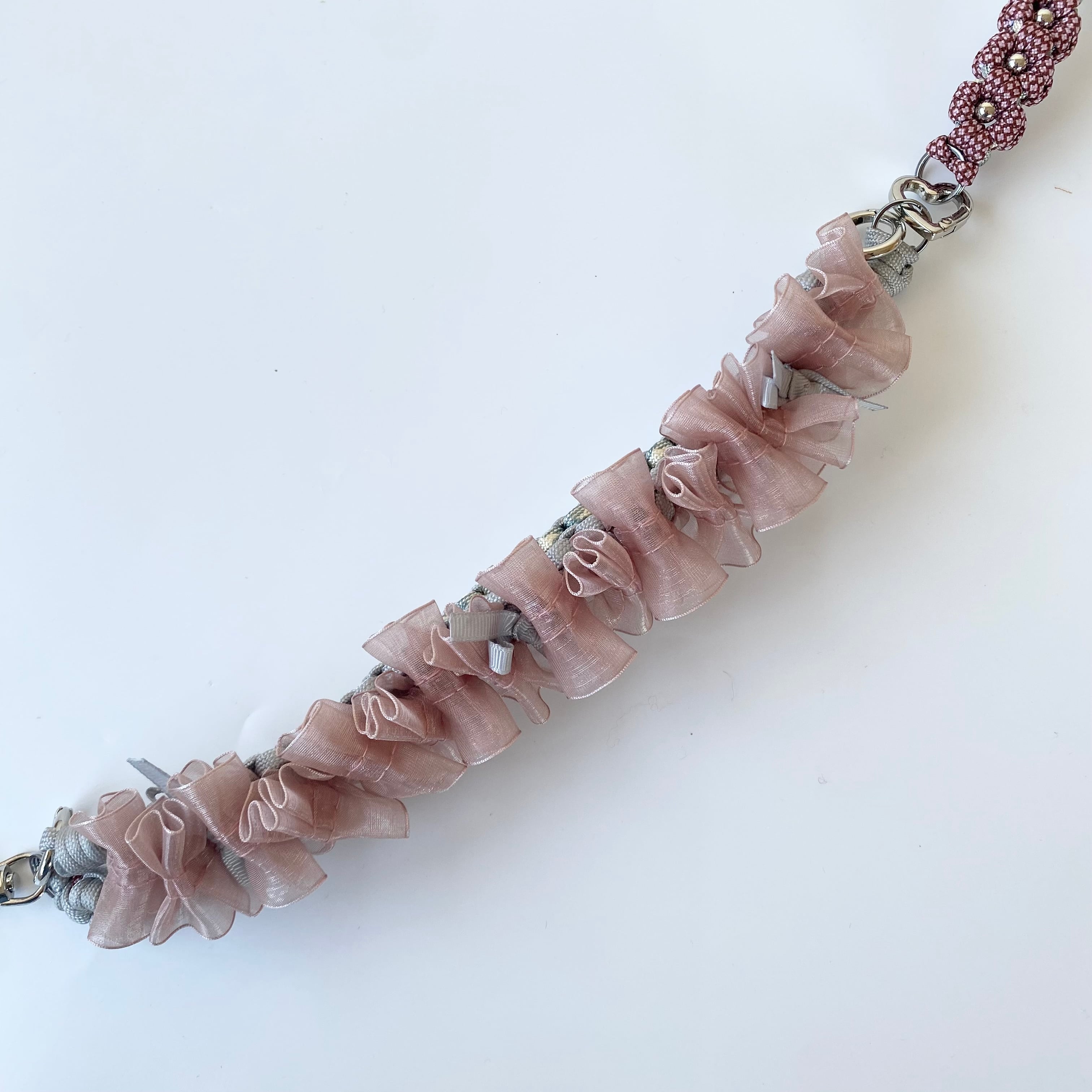 【130cm】スマホショルダー スマホストラップ 韓国リボン フリル くすみピンク グレー シルバー
