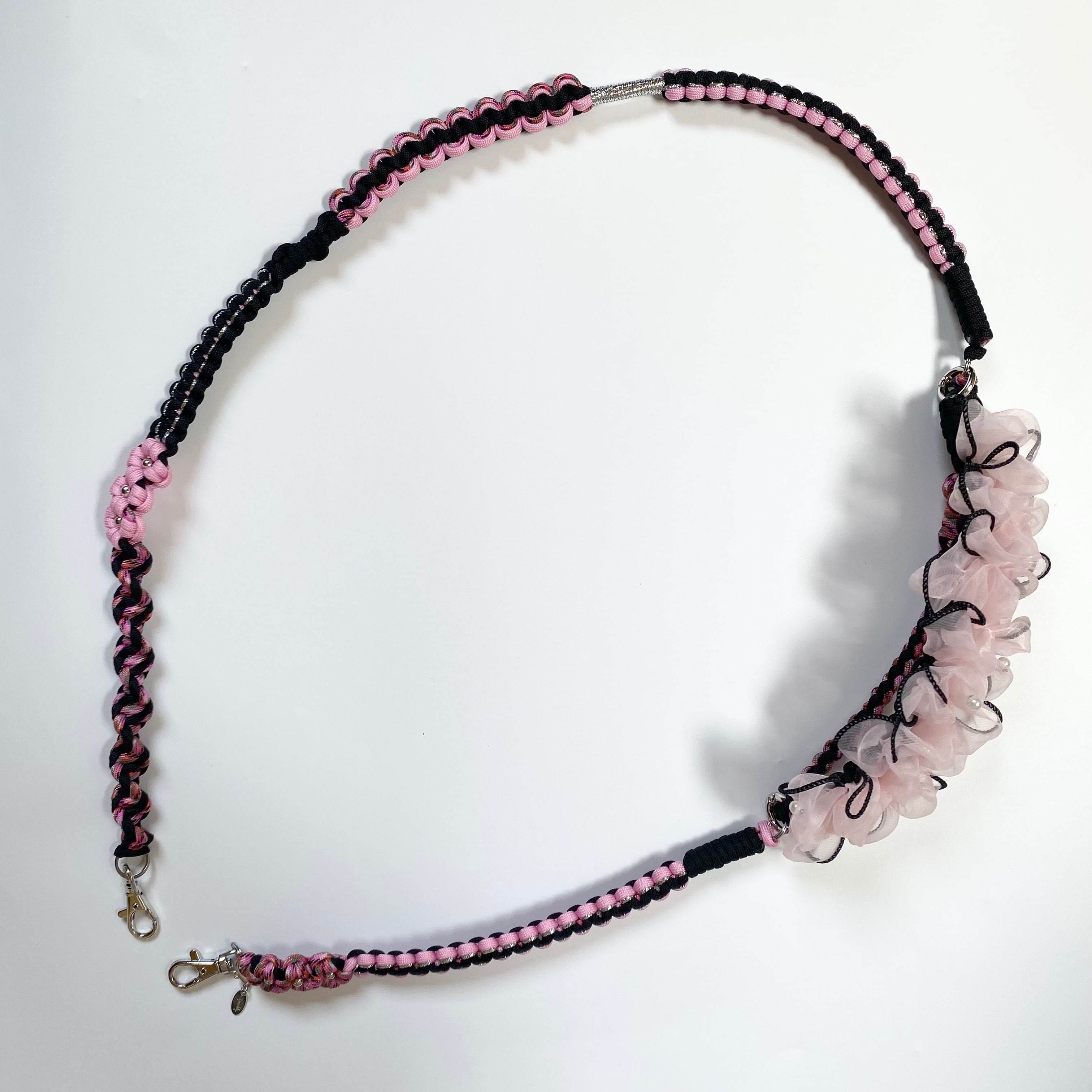 【127cm】スマホショルダー スマホストラップ フリル ピンク お花 ブラック