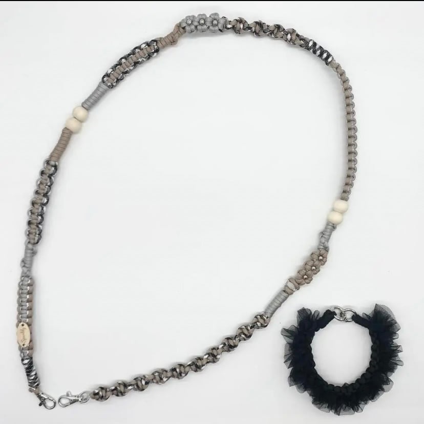 【130cm】スマホショルダー スマホストラップ チュールレース ベージュ ブラック グレー ナチュラル