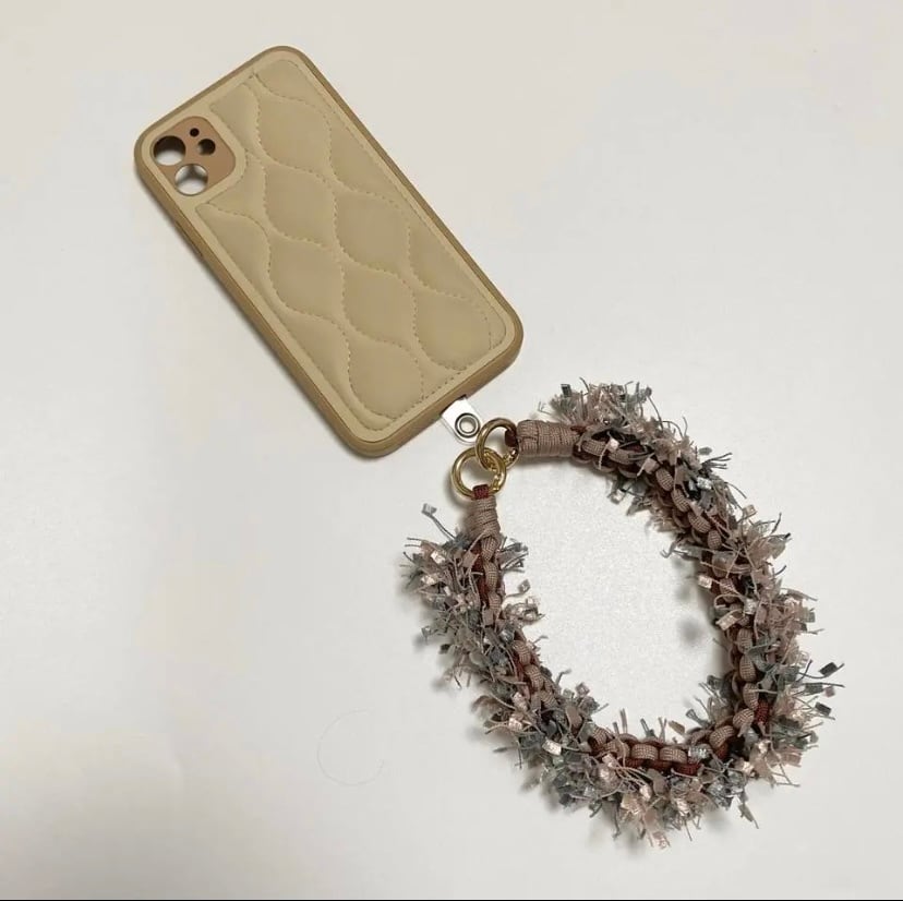 【122cm】スマホショルダー スマホストラップ パール ツイード ベージュ バーガンディ