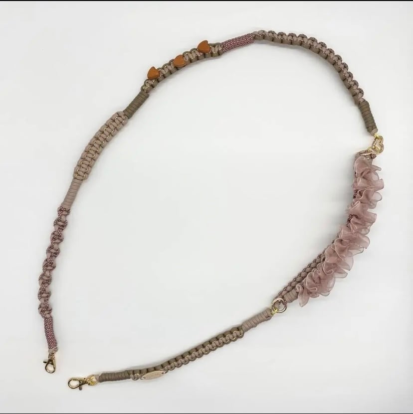 【130cm】スマホショルダー スマホストラップ フリル くすみピンク ハート ベージュ ブラウン