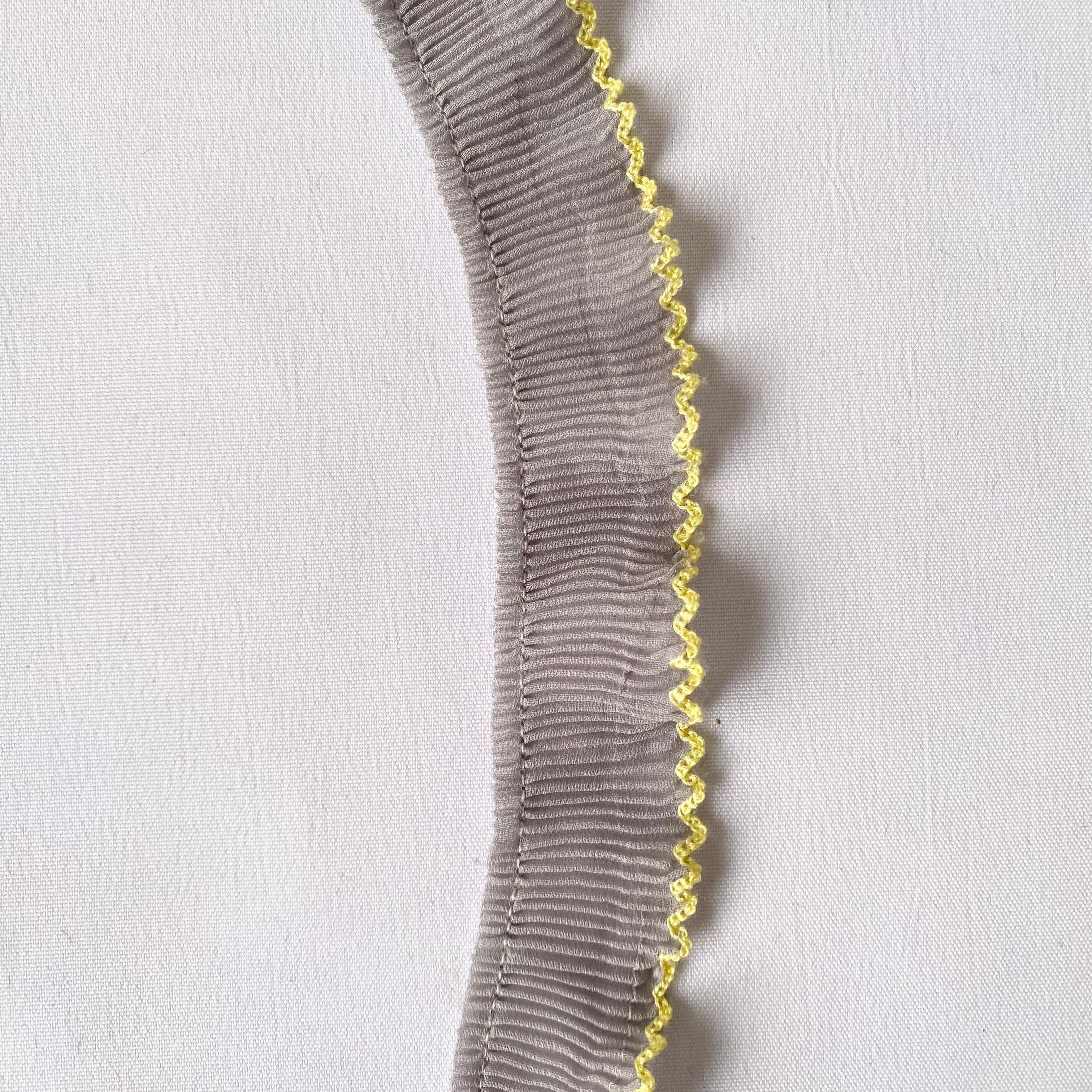 グレー×イエローの組み合わせがオシャレなフリルです。真ん中を縫い付けてフリルの様にすると、ショルダーへの編み込みもできますよ♪