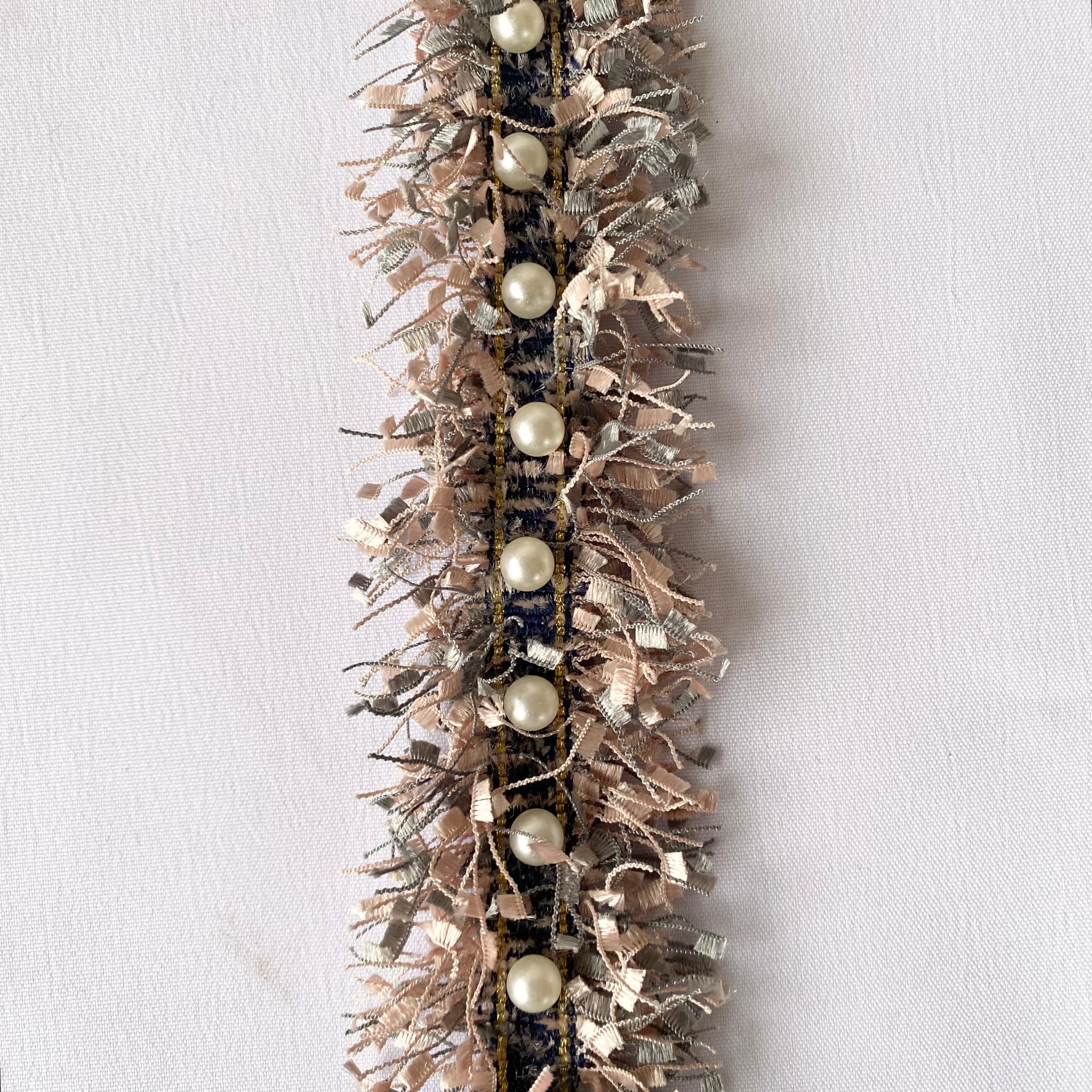 【横幅5cm】パールツイード グレー くすみピンク デニム ゴールド